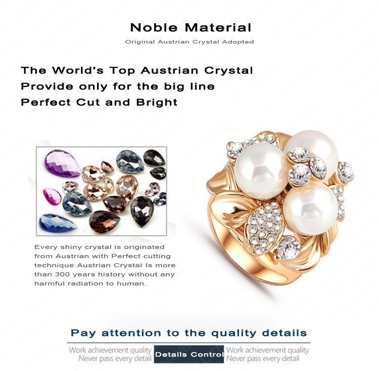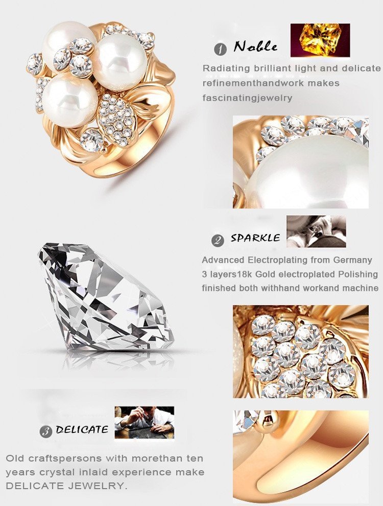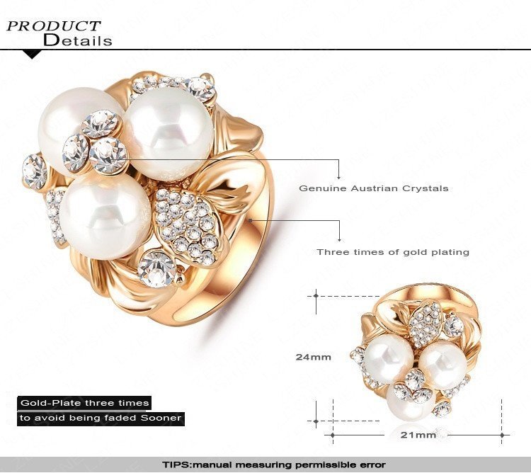 18K Gold Plated 3 Times Austrian Crystal Pearl Ring M01445