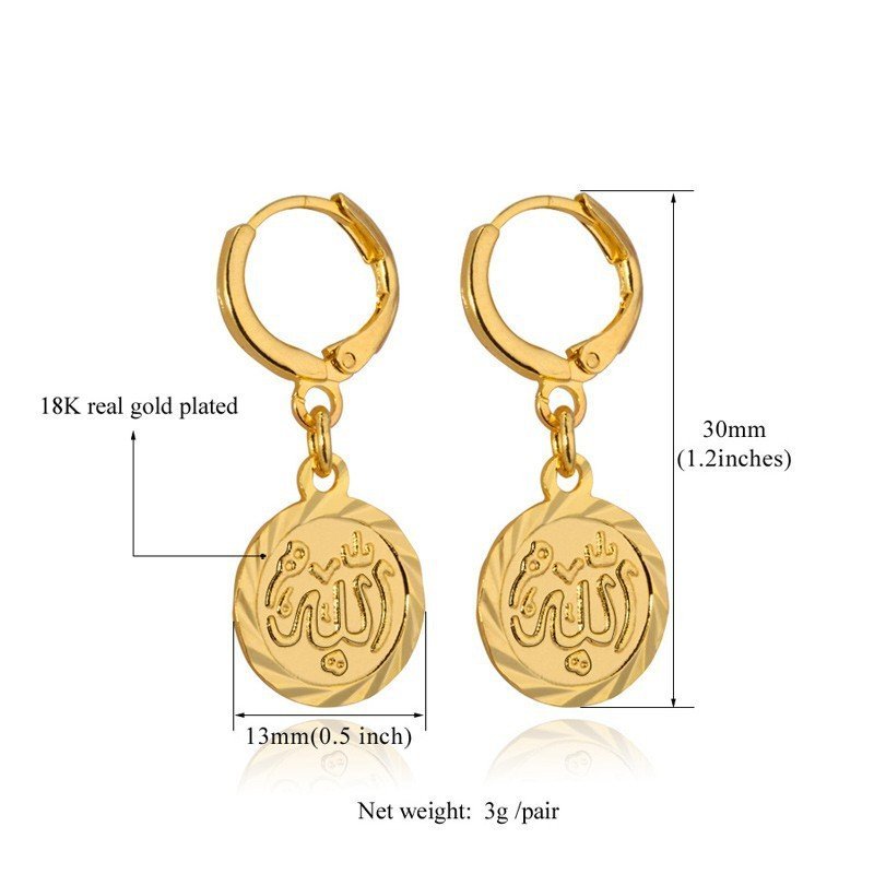 18K Real Gold Plated Allah Luxury Earrings M01484
