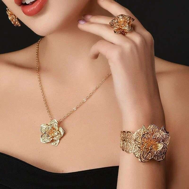 18K Real Gold Plated Environmental Friendly Copper Alloy Jewelry Set M01904
