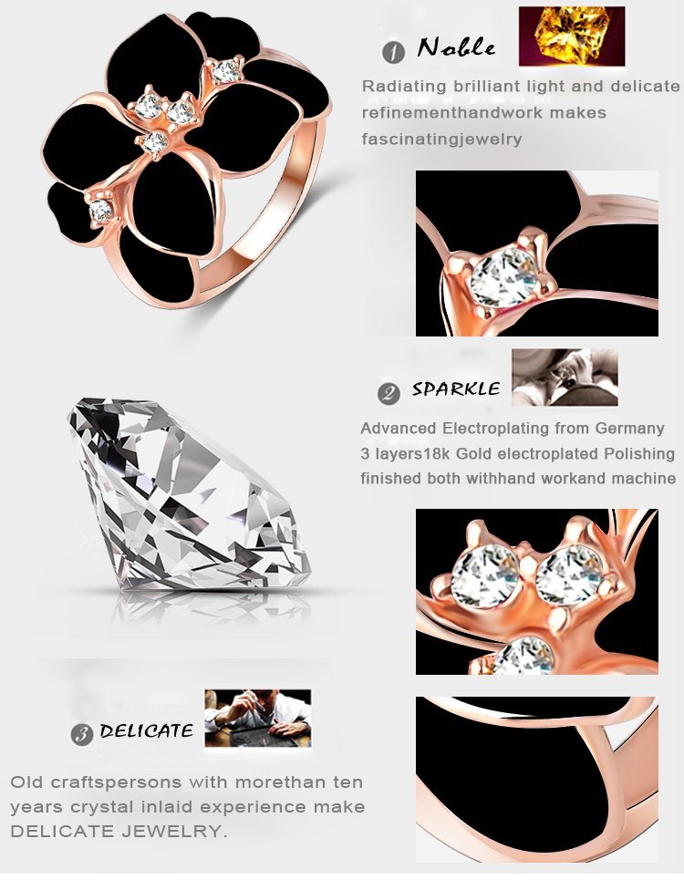 18K Rose Gold Plated 3 Times Austrian Crystal Enamel Ring M01462