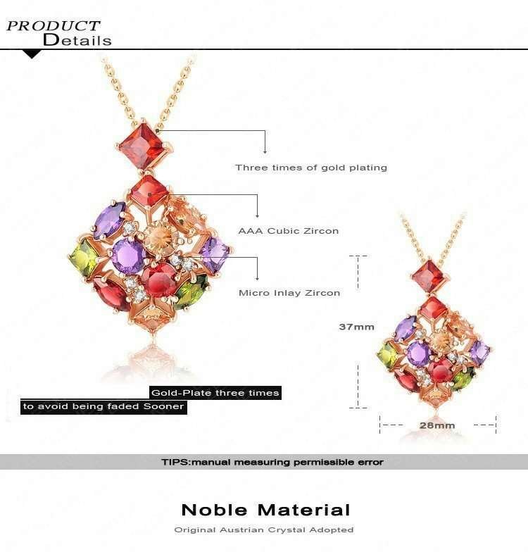 18K Rose Gold Plated 3 Times Cubic Zirconia Diamond Necklace M01548