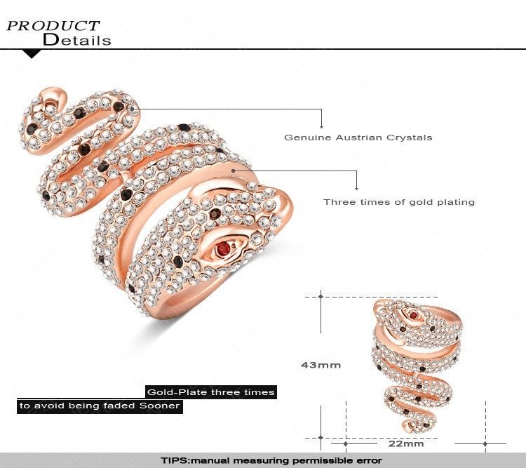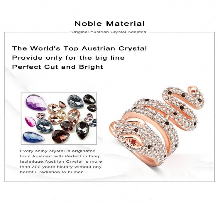 18K Rose Plated 3 Times Genuine Austrian Crystals 3D Cobra Snake Big M01550