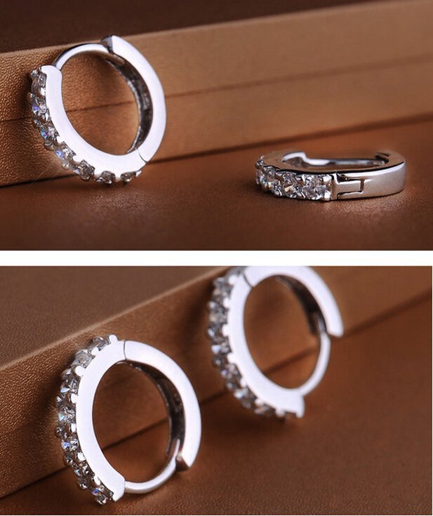 18K White Gold Plated Cubic Zirconia Hoop Earrings M01485
