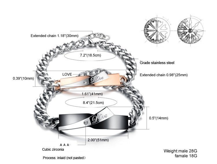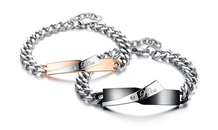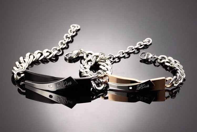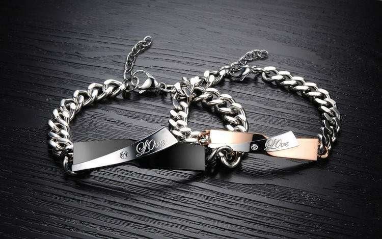 316L Stainless Steel 18K Gold Plated Couple Bracelets Jewelry Set M01594