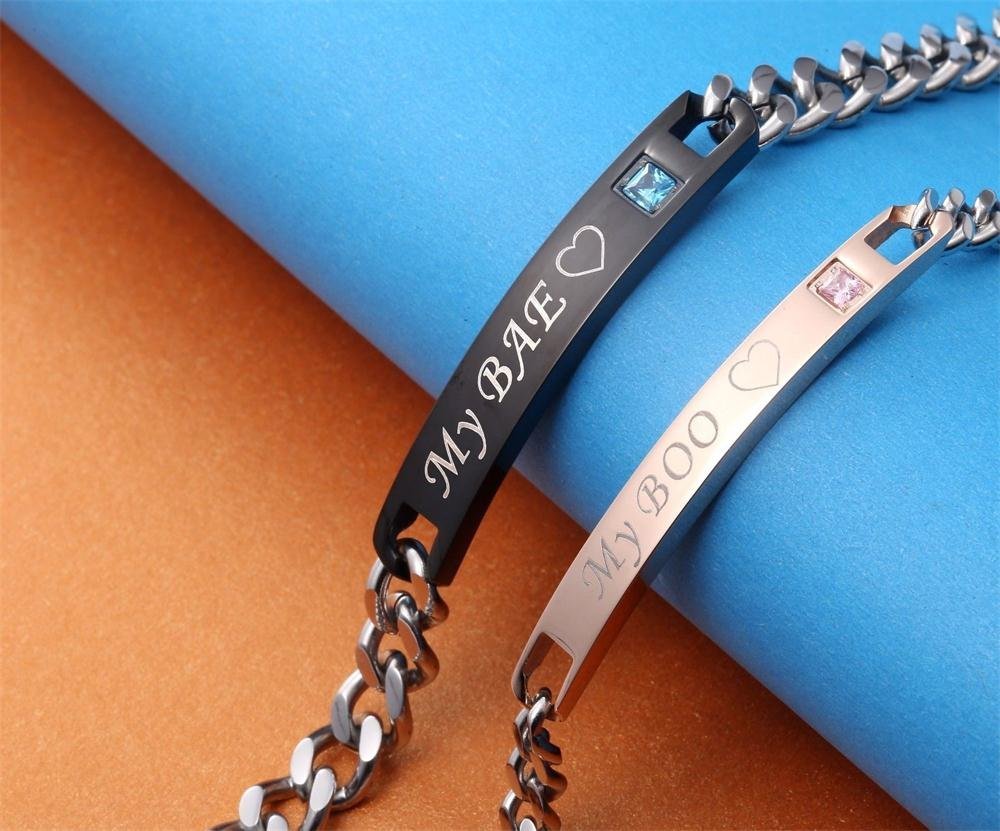 316L Stainless Steel and Titanium 18K Gold Plated Couple Bracelets Jewelry Set M01787