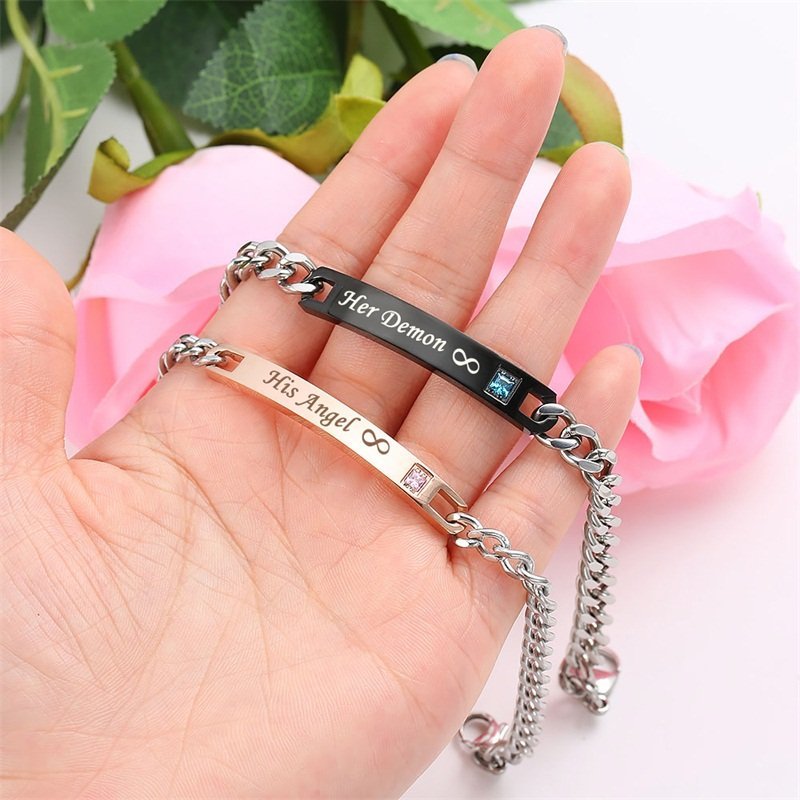 316L Stainless Steel and Titanium 18K Gold Plated Couple Bracelets Jewelry Set M01788