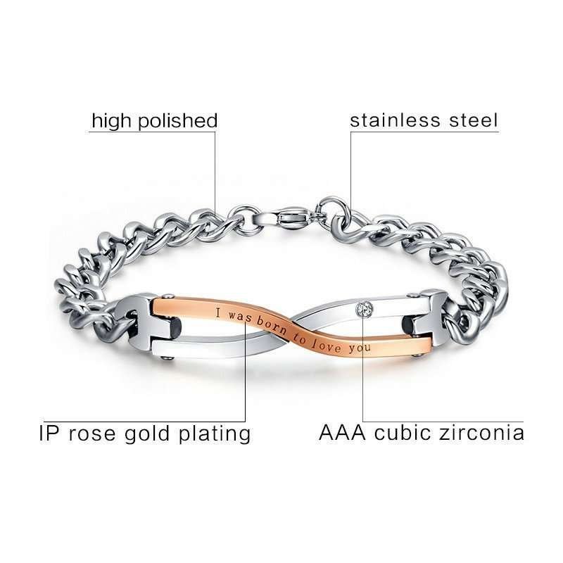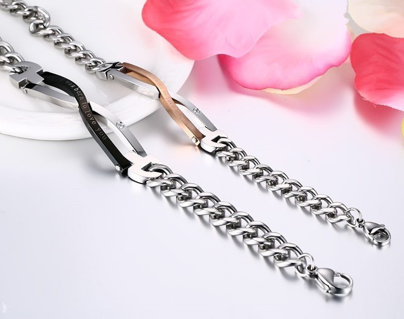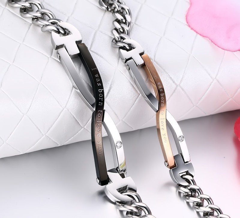 316L Stainless Steel and Titanium 18K Gold Plated Couple Bracelets Jewelry Set M01789