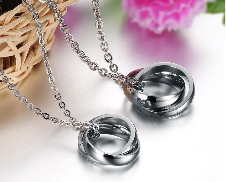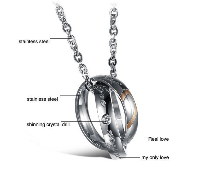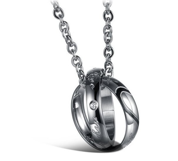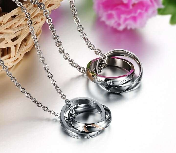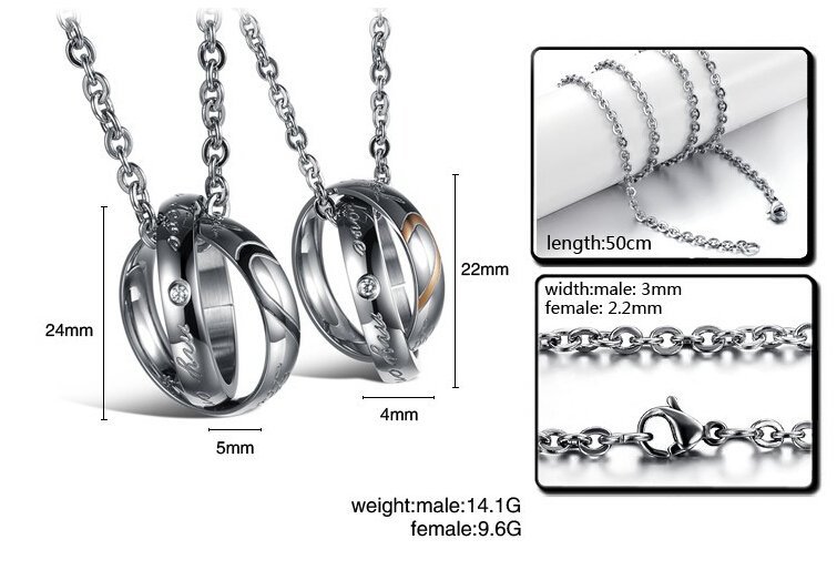 316L Stainless Steel and Titanium 18K Gold Plated Couple Necklaces Jewelry Set M01320
