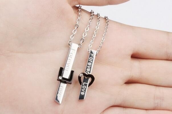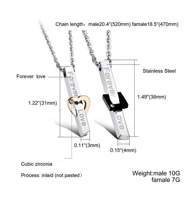 316L Stainless Steel and Titanium 18K Gold Plated Couple Necklaces Jewelry Set M01622