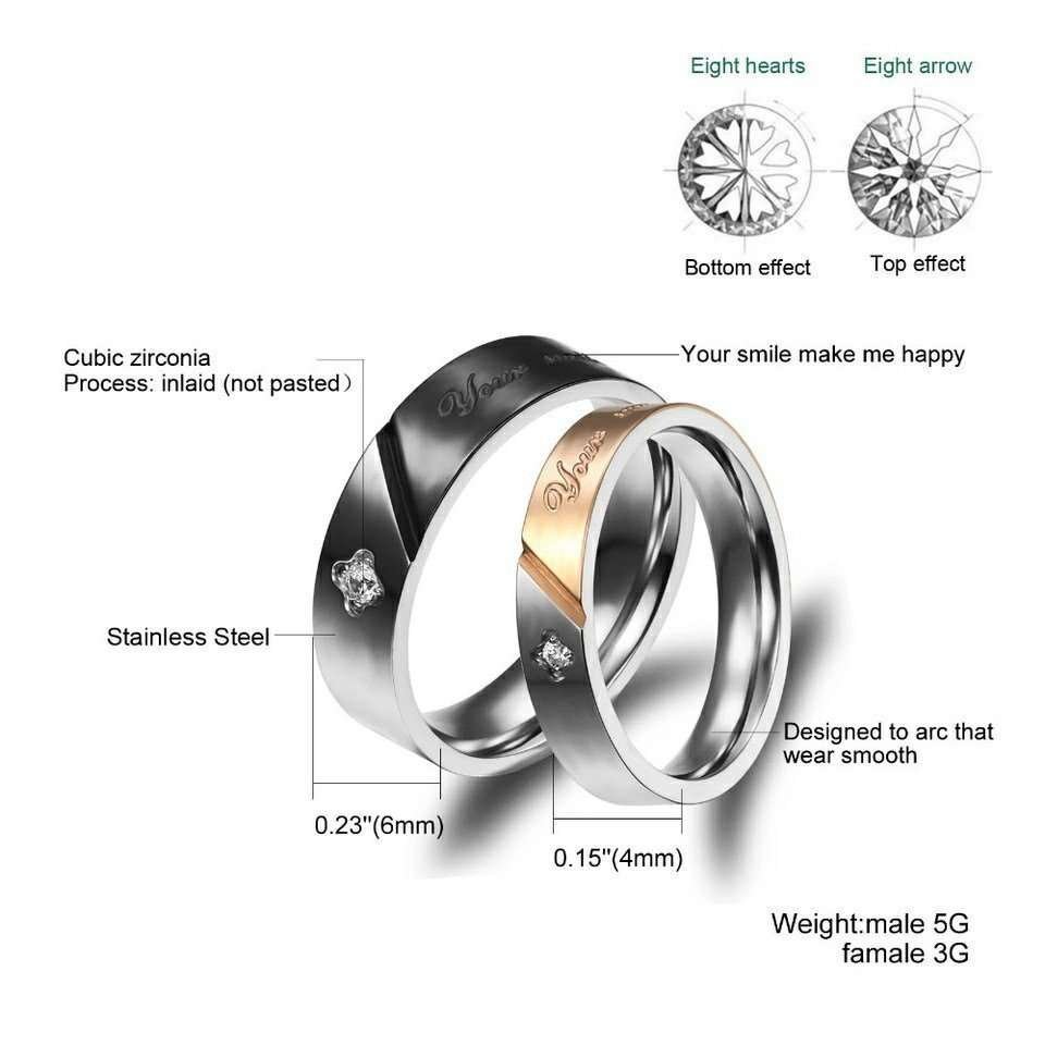 316L Stainless Steel and Titanium 18K Gold Plated Couple Rings Jewelry Set M01757