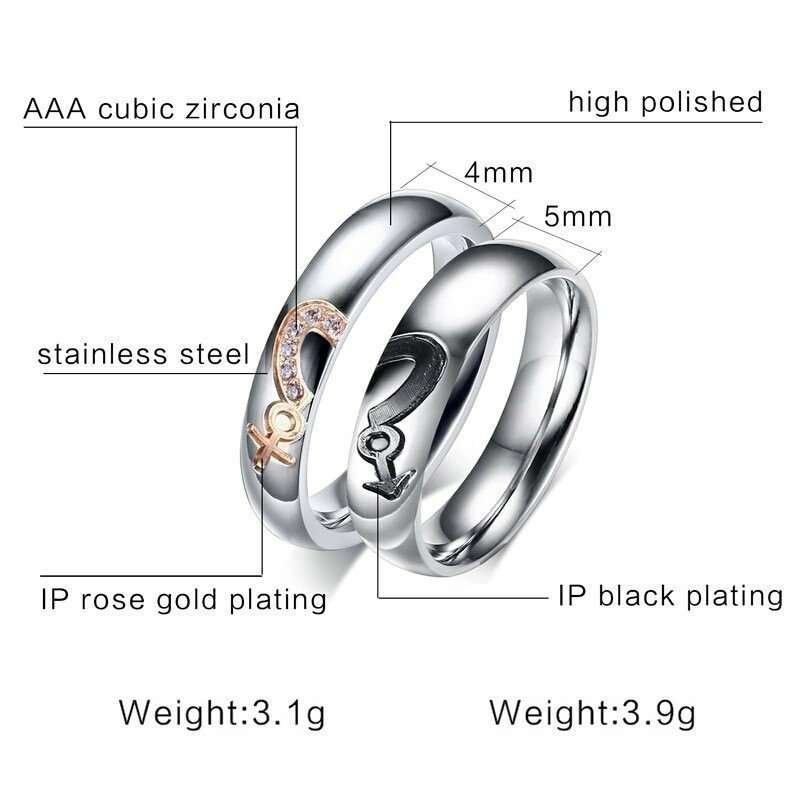 316L Stainless Steel and Titanium 18K Gold Plated Couple Rings Jewelry Set M01758