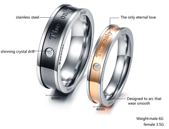 316L Stainless Steel and Titanium 18K Gold Plated Couple Rings Jewelry Set M01776