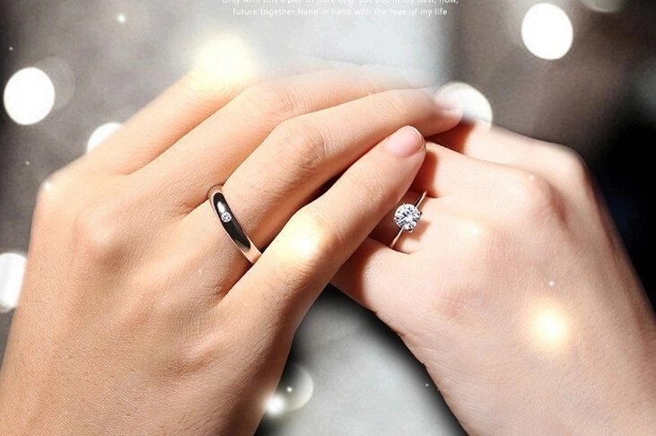 925 Silver Plated Austrian Crystal Adjustable Couple Rings M01743
