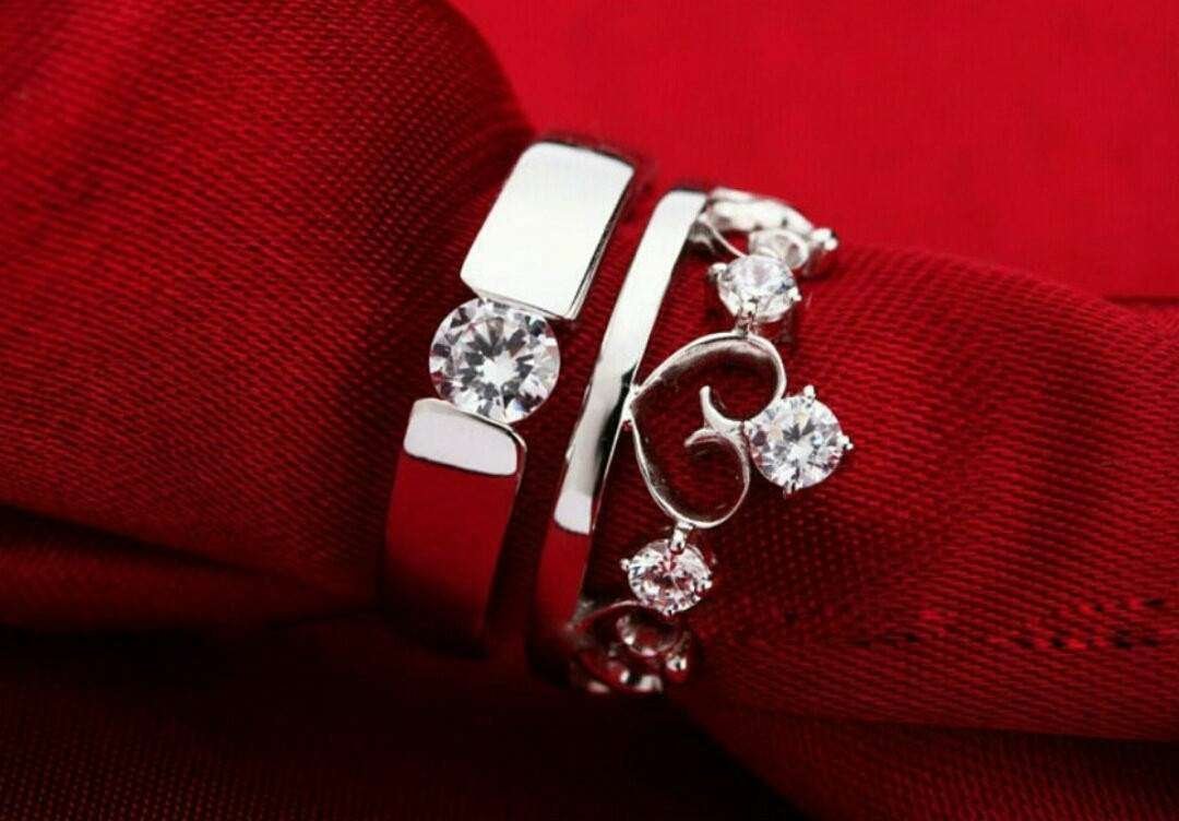 925 Silver Plated Zircon Stones Couple Rings M01596