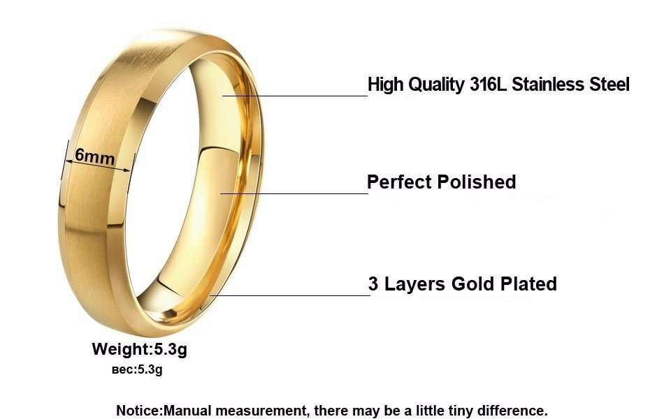 316L Stainless Steel 18K Real Gold Plated Ring M01723
