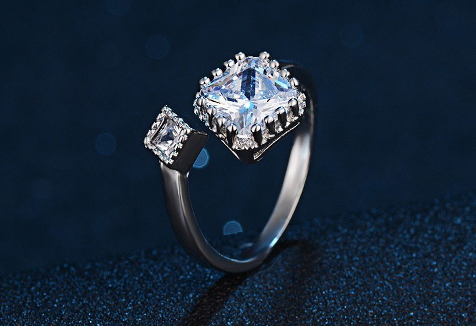 925 Silver Plated Adjustable Austrian Crystal Ring M01719