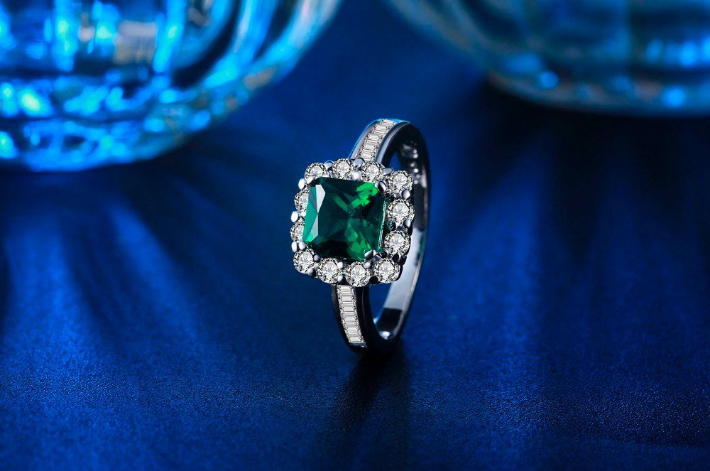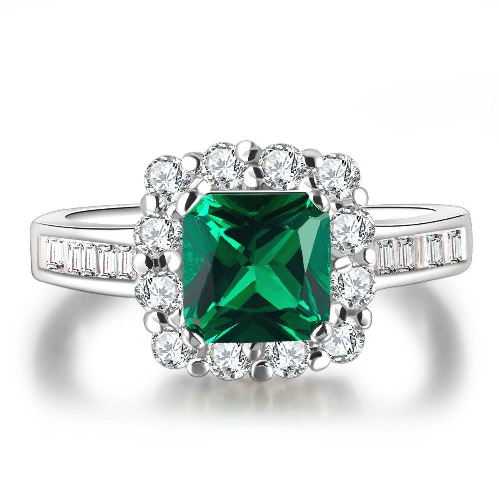 925 Silver Plated Austrian Crystal Green Ring M01700