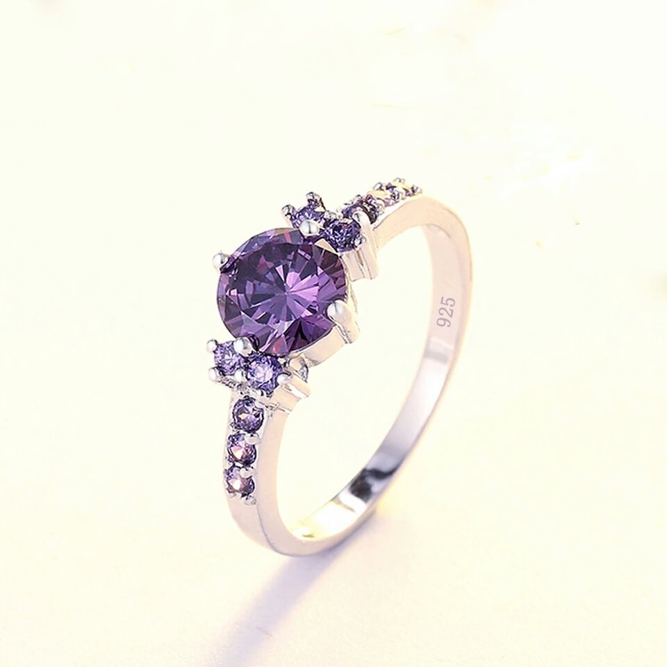 925 Silver Plated Austrian Crystal Violet Ring M01720
