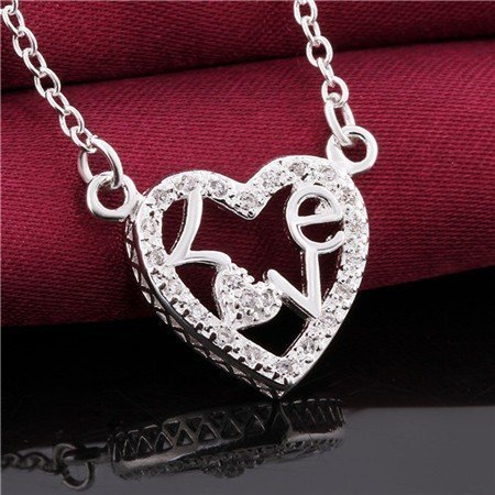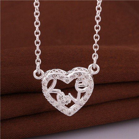 925 Silver Plated LOVE Heart Necklace M01662