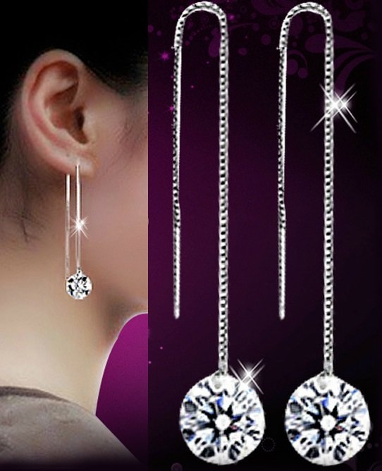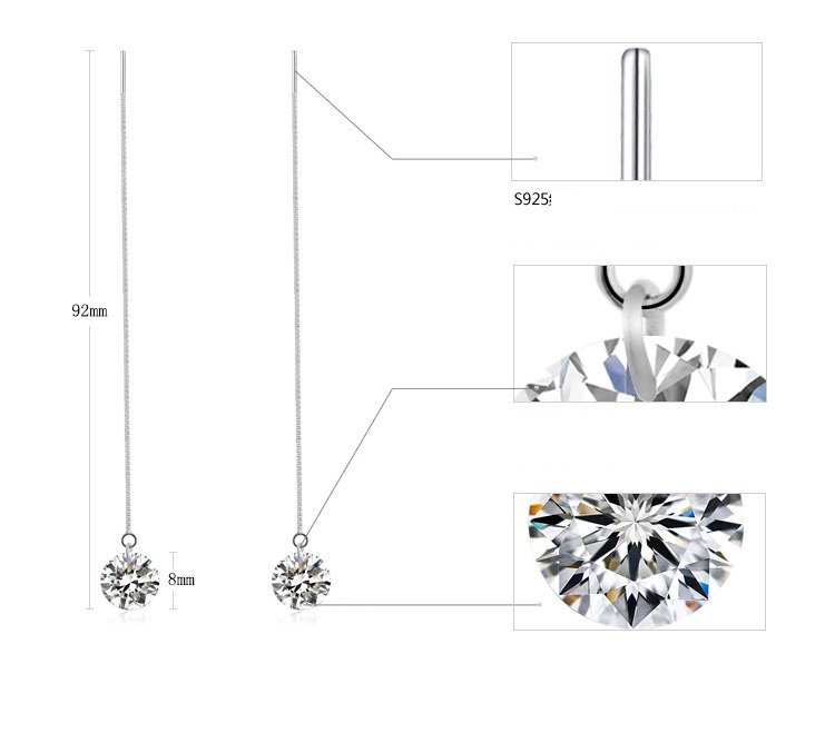 Platinum Plated 8 mm Swiss Cubic Zircon Long Earrings M01265