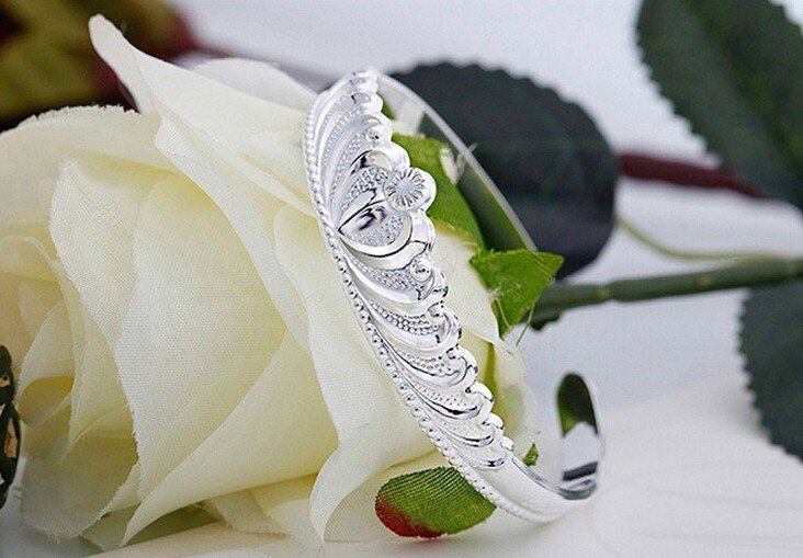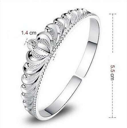 Platinum Plated Cubic Zirconia Crown Open Bangle M01624
