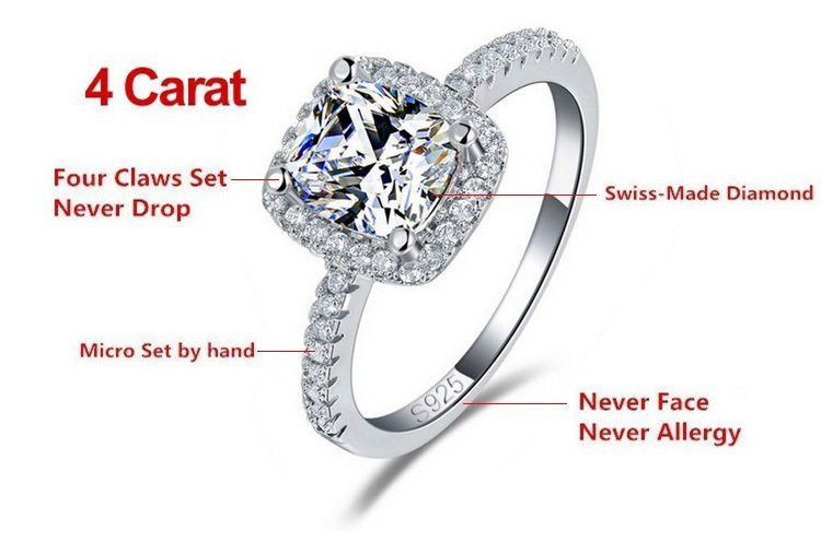 Pure 925 Sterling Silver 4 Carat CZ Diamonds Wedding Never Fade Ring M01390