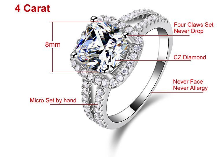 Pure 925 Sterling Silver 4 Carat CZ Diamonds Wedding Never Fade Ring M01393