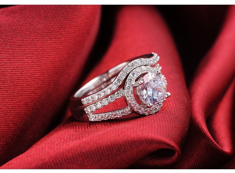 Pure 925 Sterling Silver Pair CZ Diamonds Wedding Never Fade Ring M01391
